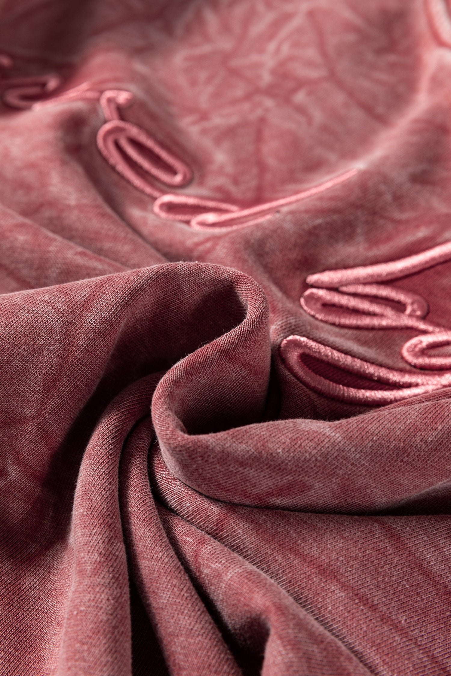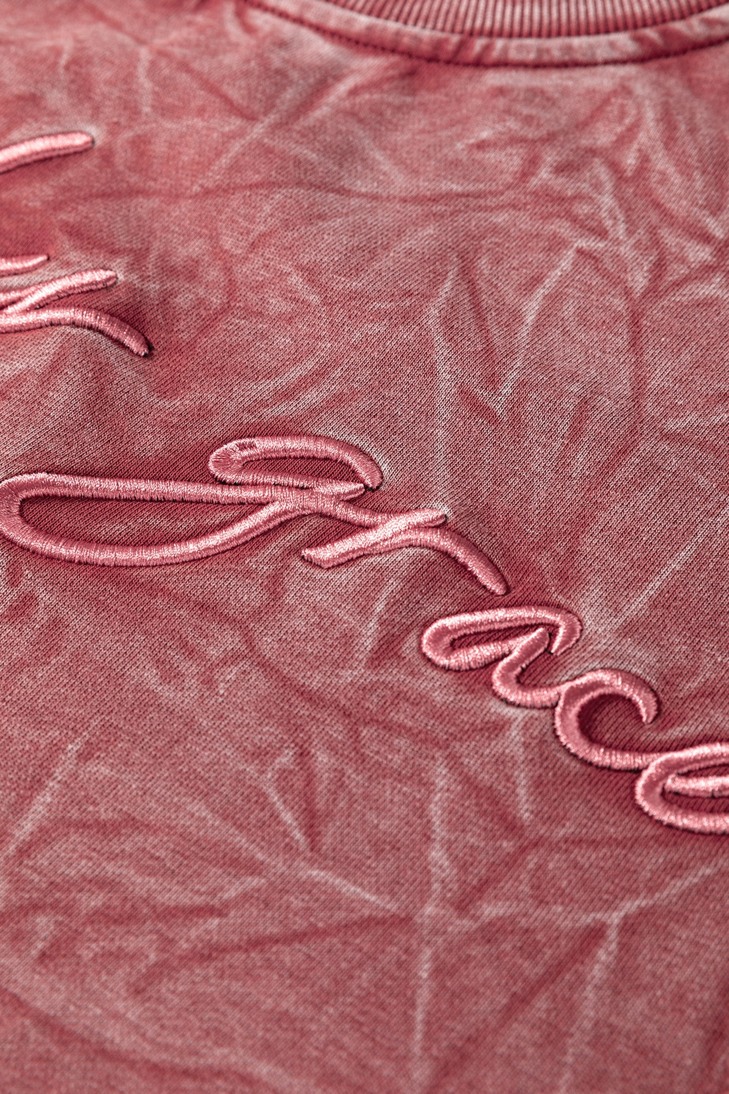 Mineral Red saved by grace Letter Embroidery Mineral Wash Loose Sweatshirt