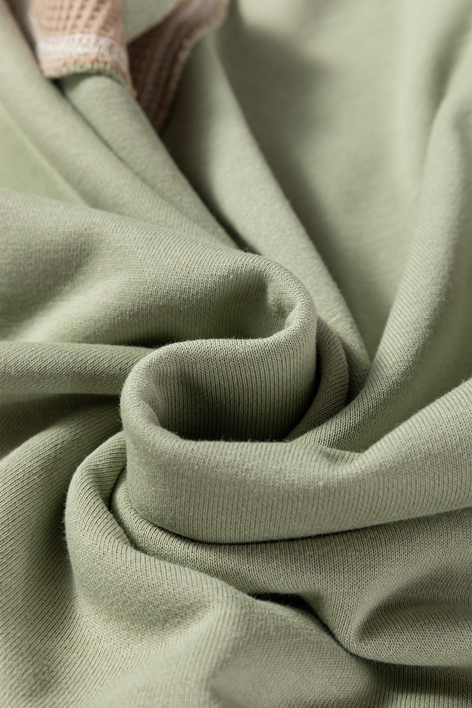 Smoke Green Color Block Mix Texture Waffle Patchwork Oversize Sweatshirt